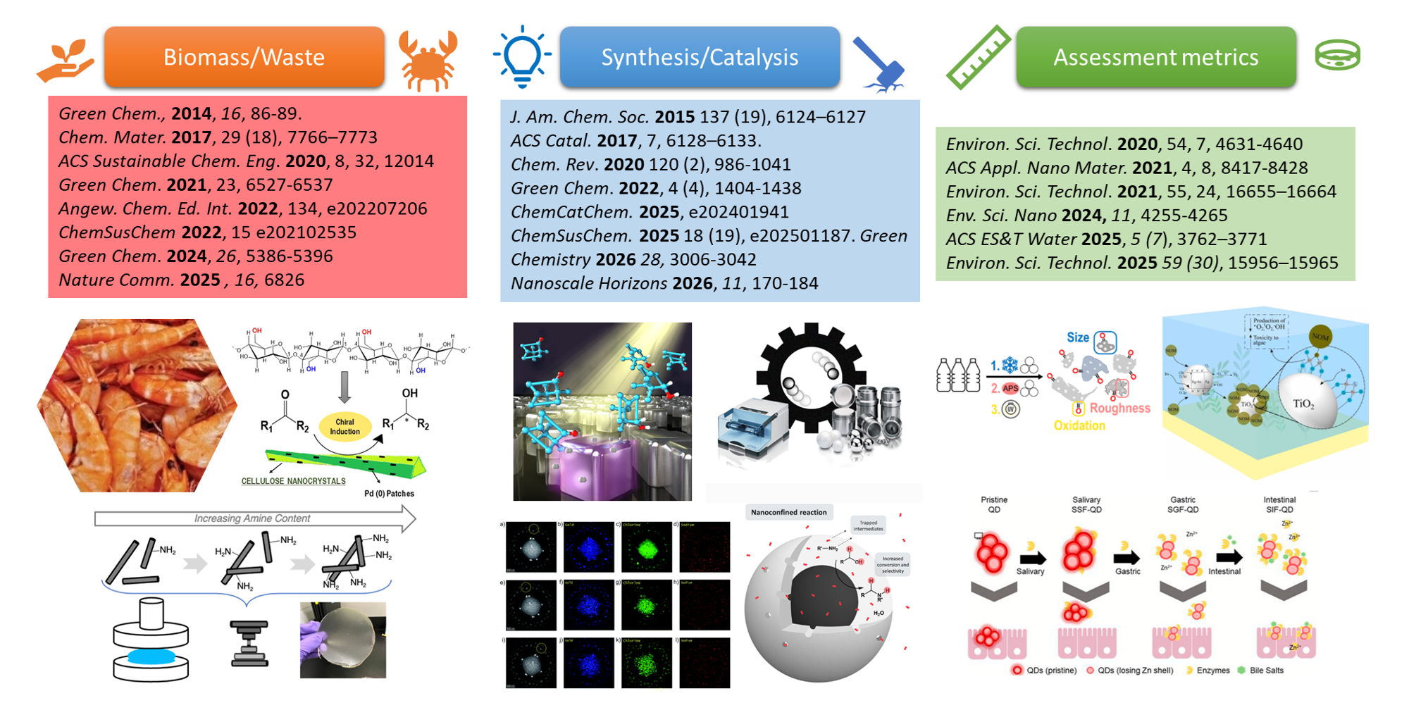 Our group works at the interface of green chemistry, materials design, catalysis and assessment to develop a holistic approach to Sustainable Nanomaterials. Along the way, we make discoveries in biomaterials, polymer functionalization and mechanochemistry.